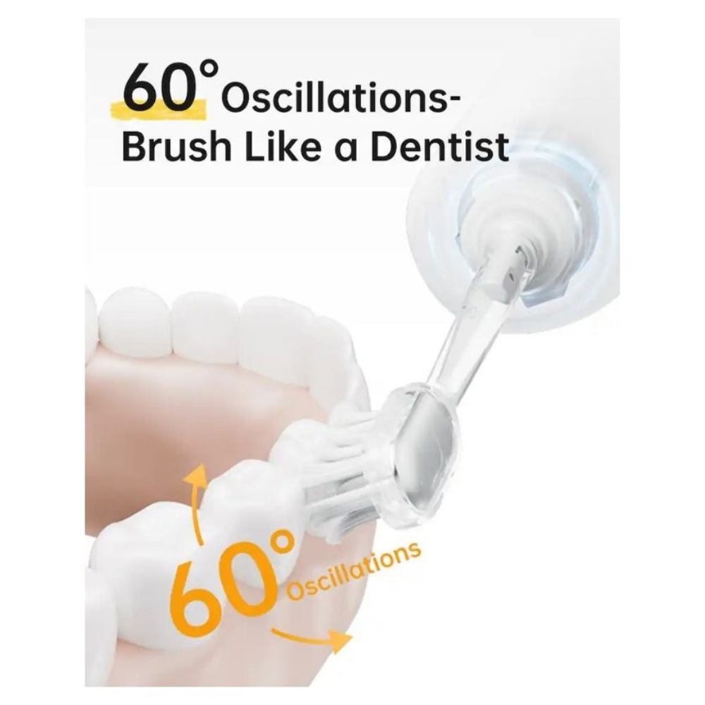 The bristles measure 0.02mm at the top with a 90% tapering rate. Combined with the 60° rotation, the Wave cleans teeth deeper than ever before.