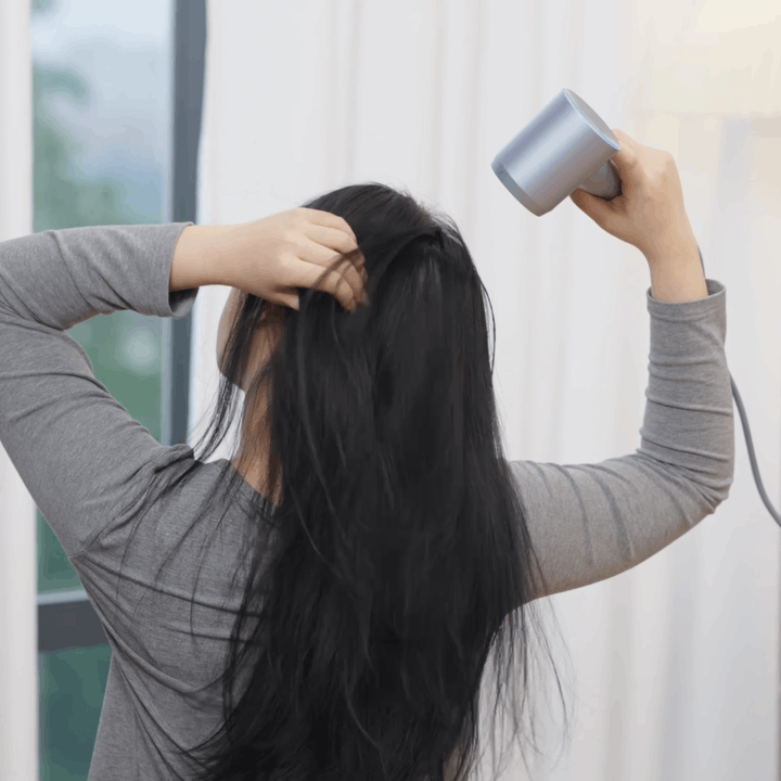 Using lower temperatures and keeping the hair dryer away from a single area of your hair for too long will help to reduce heat exposure. Nozzles can also help to ensure that by spreading heat of focusing airflows onto a smaller area..