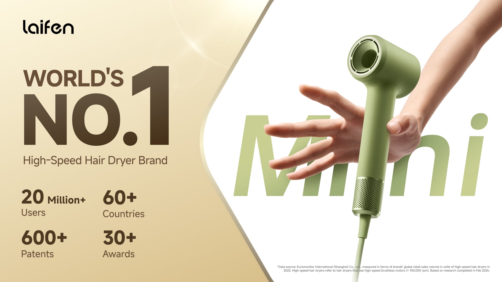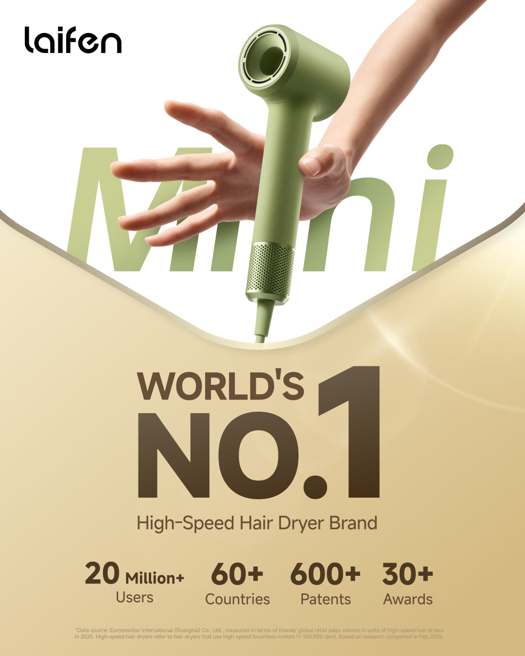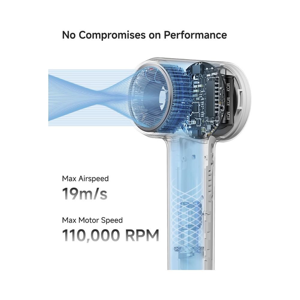 The Laifen Mini hair dryer is powered by Laifen's self-developed high-speed brushless motor, which instantly generates a strong airflow to quickly dry your hair.